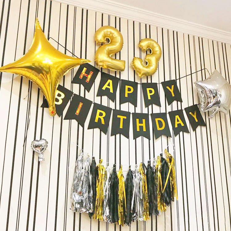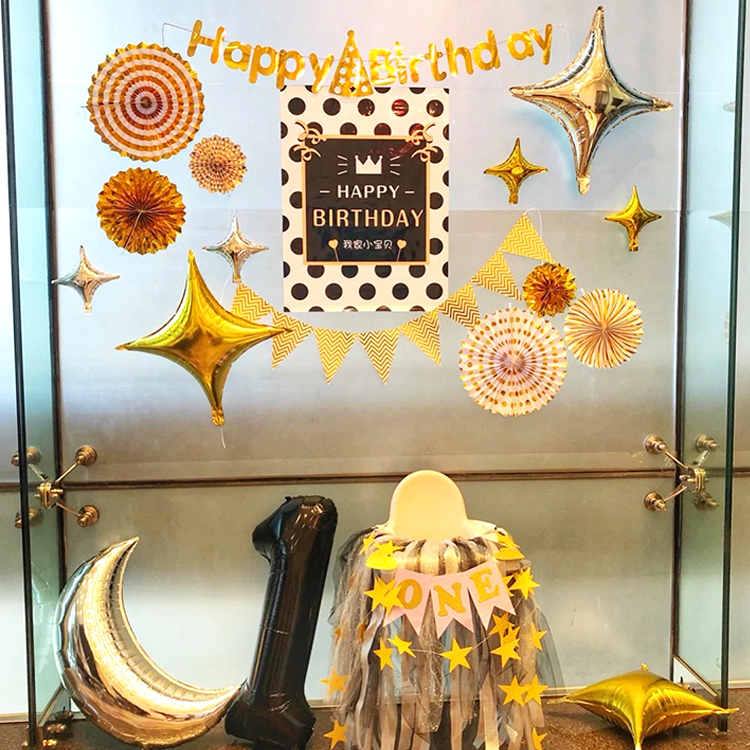 Gold Silver Main Chart Black Gold Package A1*3 meters of rain gold paper fan (8 pieces) Black fish tail birthday flag Venus hanging gold double notes gold monoling gold gold monoling gold