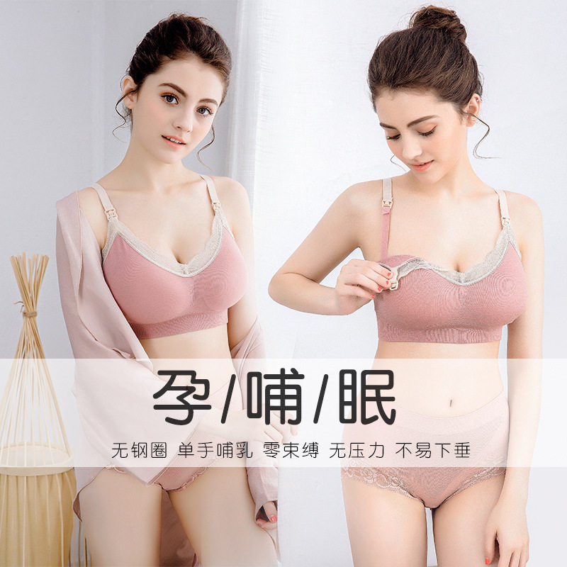 Lactation underwear bra Pregnancy thin maternity bra Lactation anti-sagging gathered style No rim lace edge