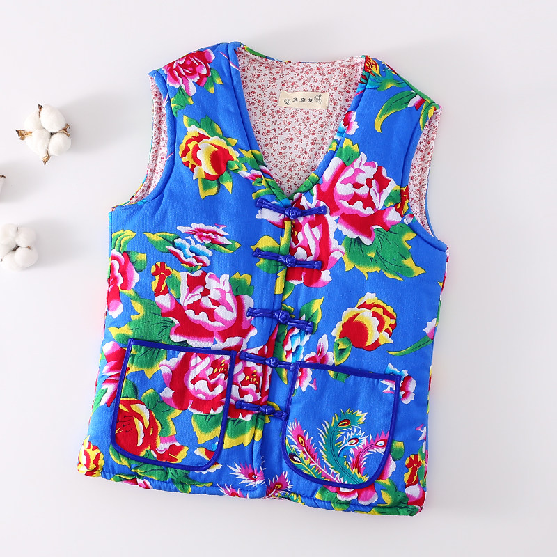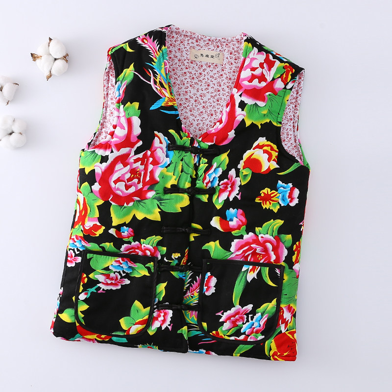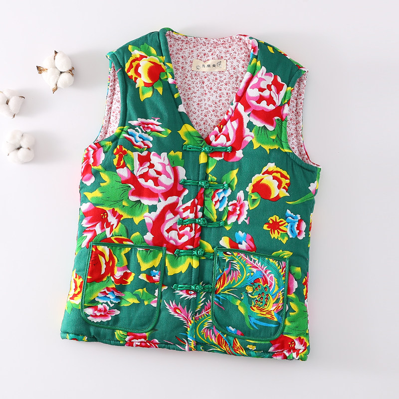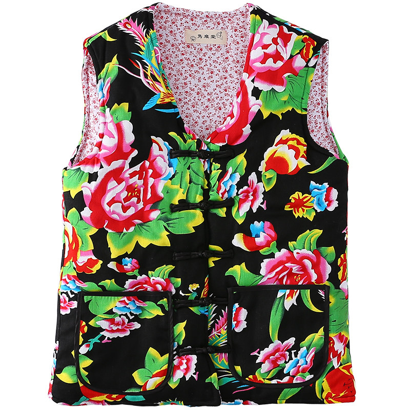 Men's clothing 2022 silk Mian waistcoat winter thickened pure cotton large flower bouquet with short section of waistcoat for adult waistcoat