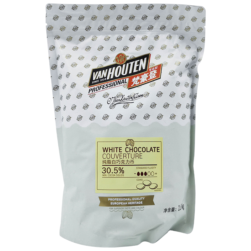 Van Houten white chocolate coins 30 5% pure cocoa butter chocolate cake raw chocolate cake raw material 1 5KG