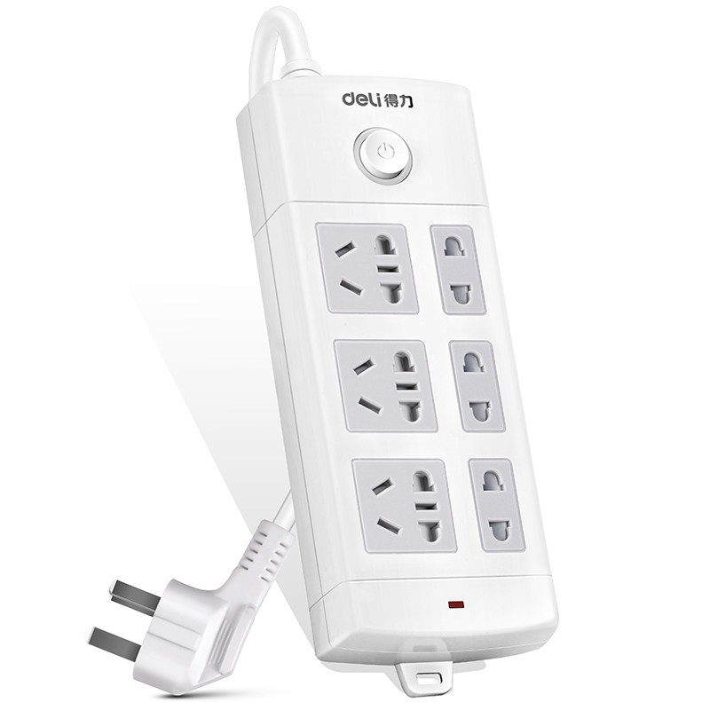 Deli 18208 socket towing board 6 hole extension cable length 2 meters wire terminal board safety plug board row socket plug office supplies stationery