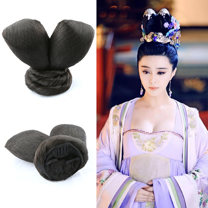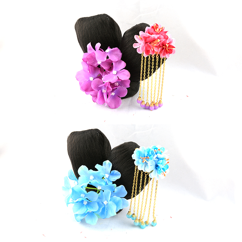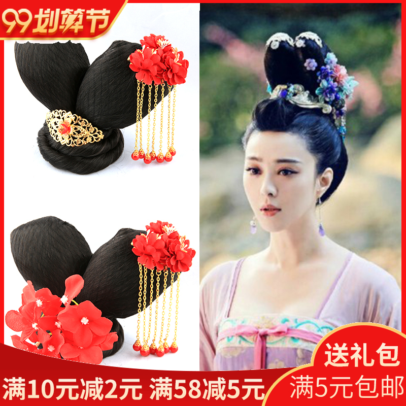 Ancient Dress New Hairstyle Head Accessories Hair Accessories Hanfu Double Heads Hair heads Flowers Black High Temperature Silk Wig Pan Hair Beauty Salon