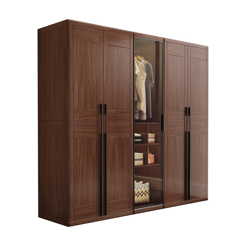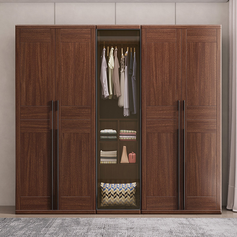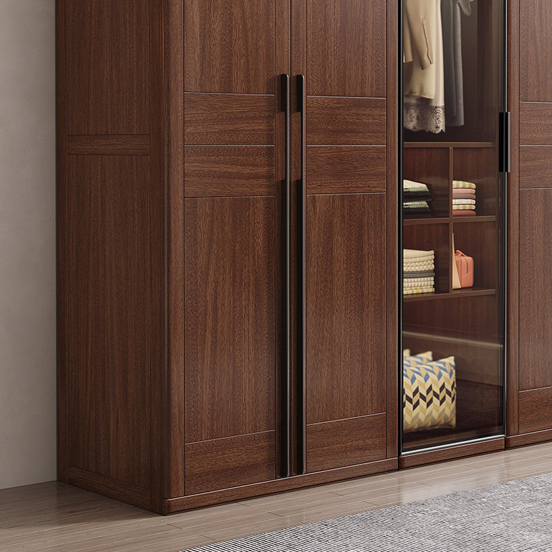 Chinese-style solid wood wardrobe simple modern 345 assembled walnut large wardrobe corner side cabinet economy bedroom