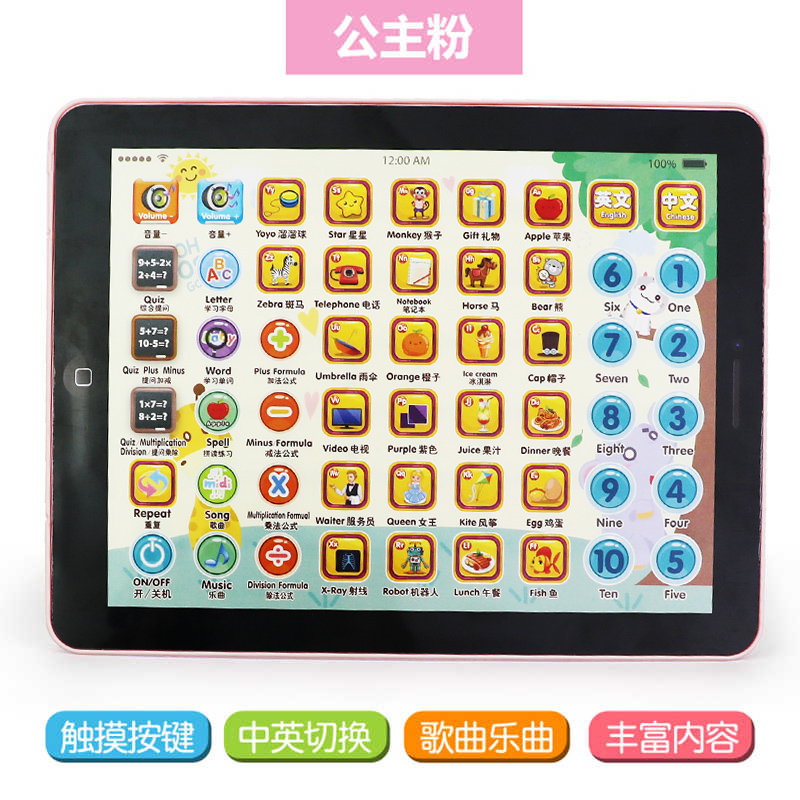 Macron Powder IPad Apple Early Teaching Machine (Battery Version) Macron Powder IPad Apple Early Teaching Machine (Charging Version) (85 Content Color Random) Palm on Little Fire Rabbit Story Machine (Battery