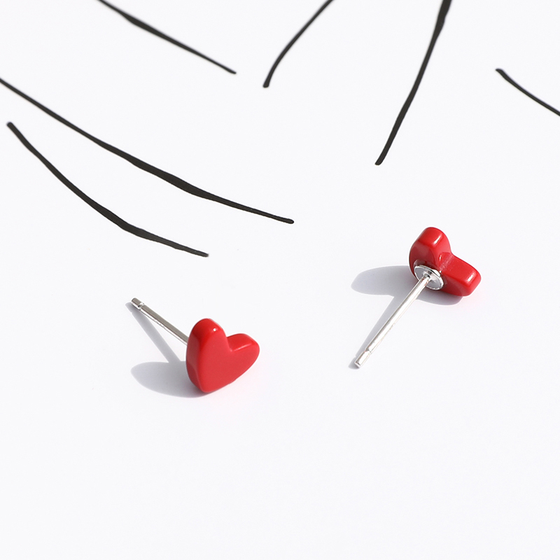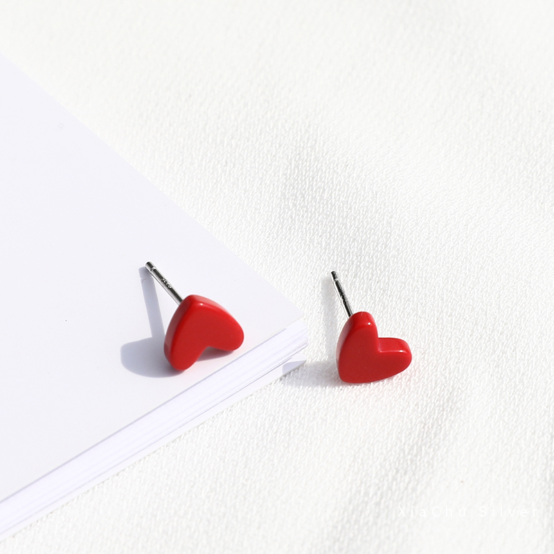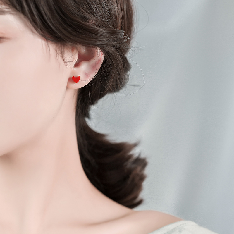925 pure silver small red heart ear pin woman 2021 New wave red loving earrings South Korean peach heart earrings heart-shaped
