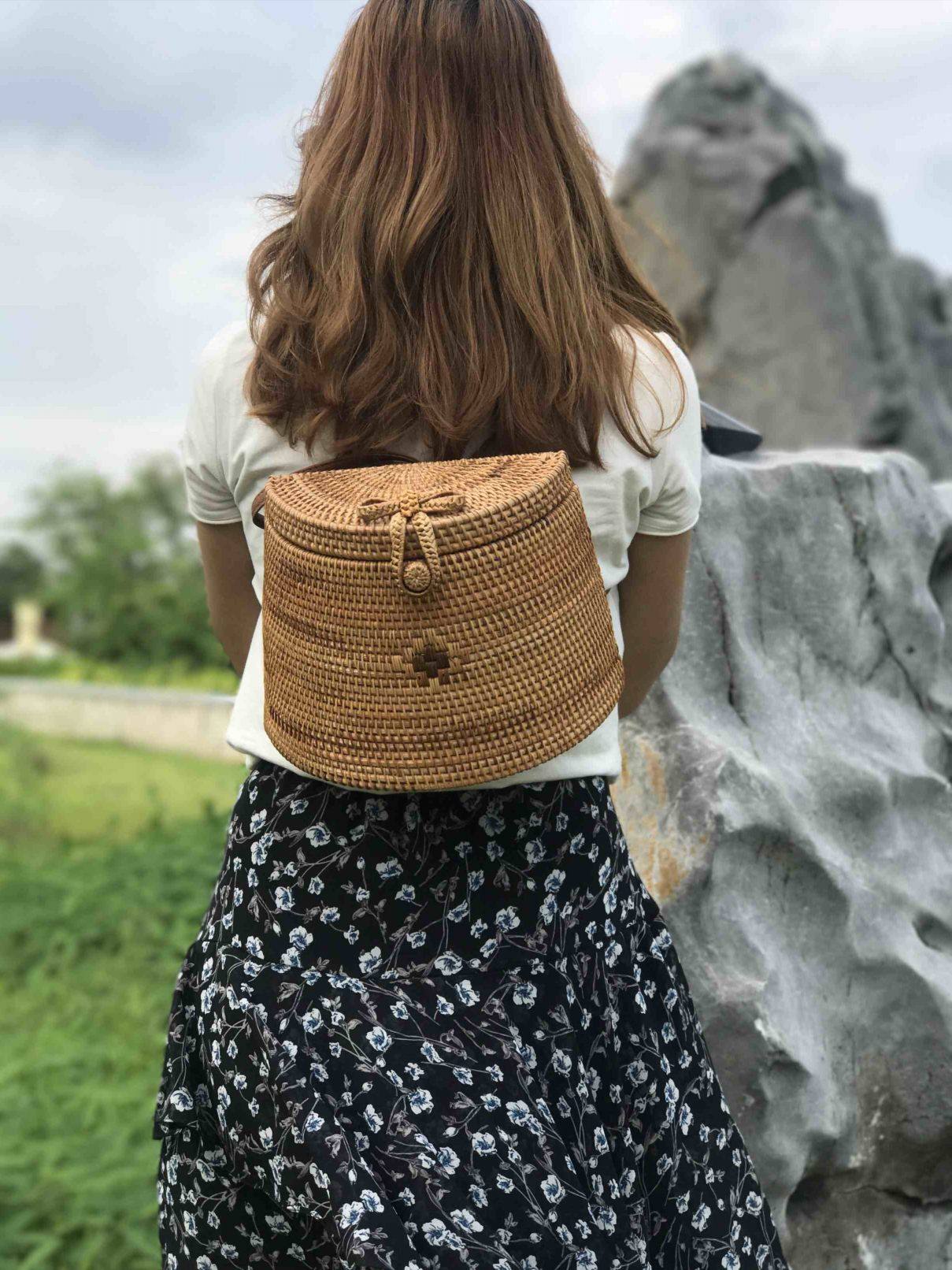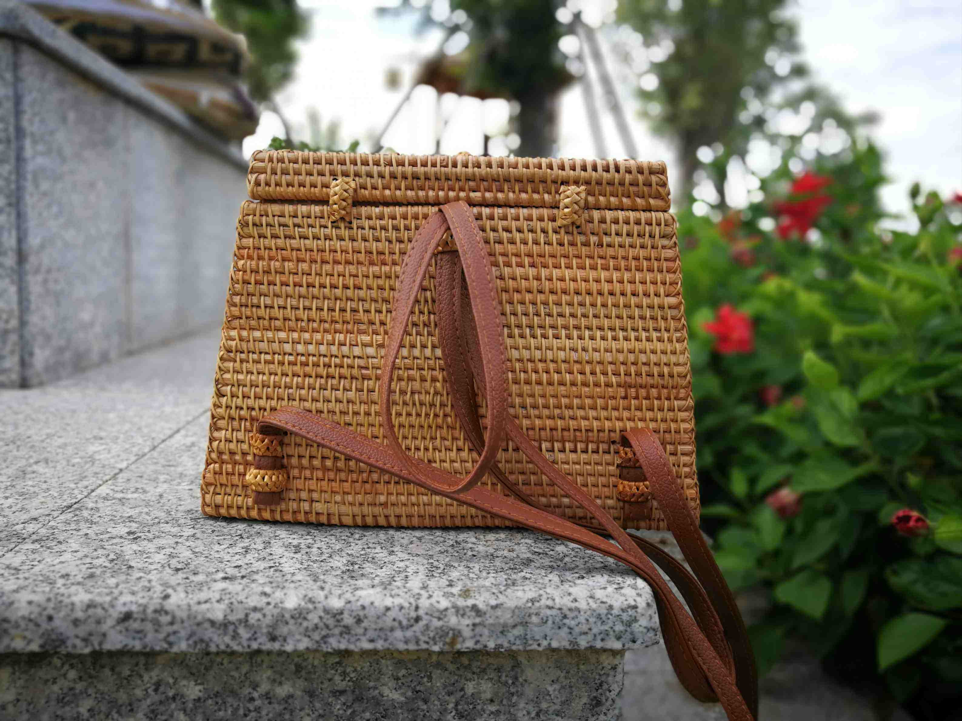 Autumn Rattan Bag Handmade Women's Backpack Retro New Handbag Picnic Basket Storage Box