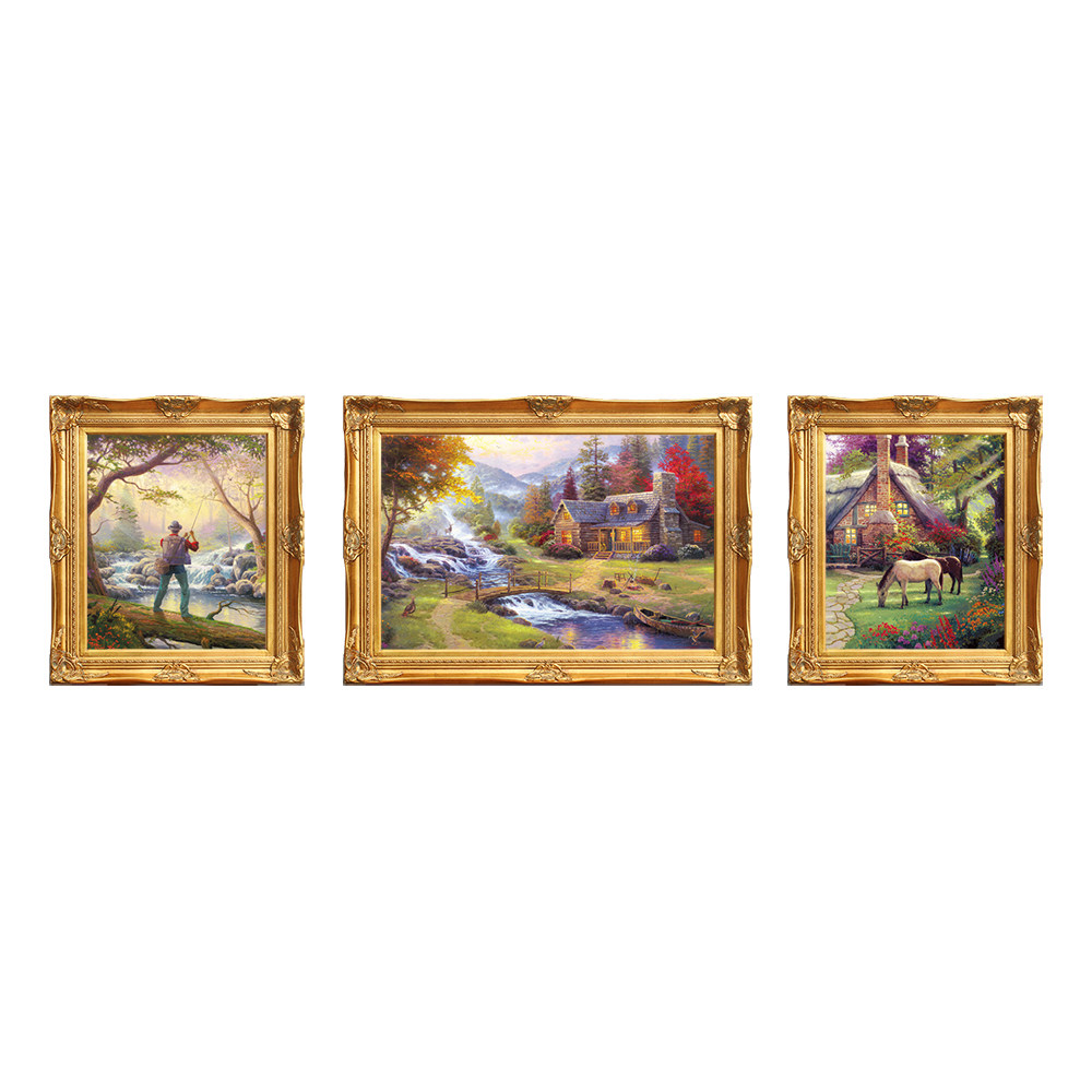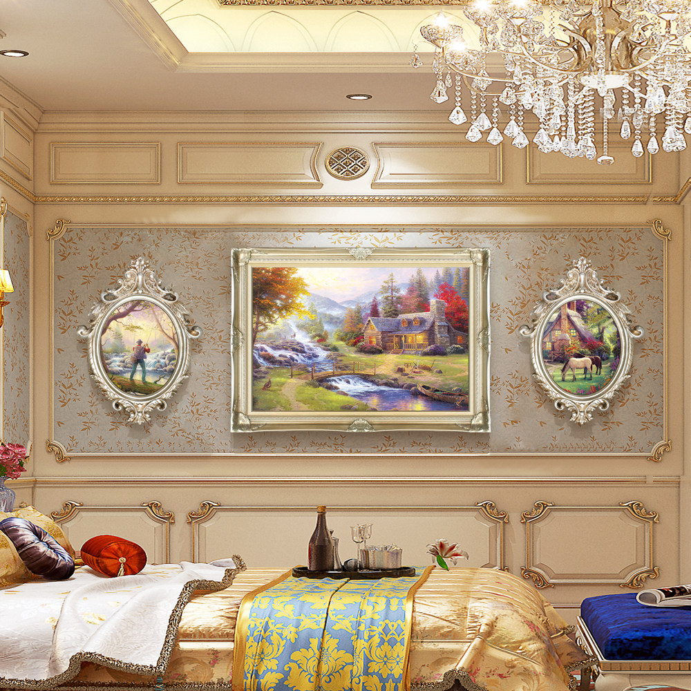 European-style living room decoration painting sofa background wall painting study room painting Thomas landscape triptych oil painting atmosphere