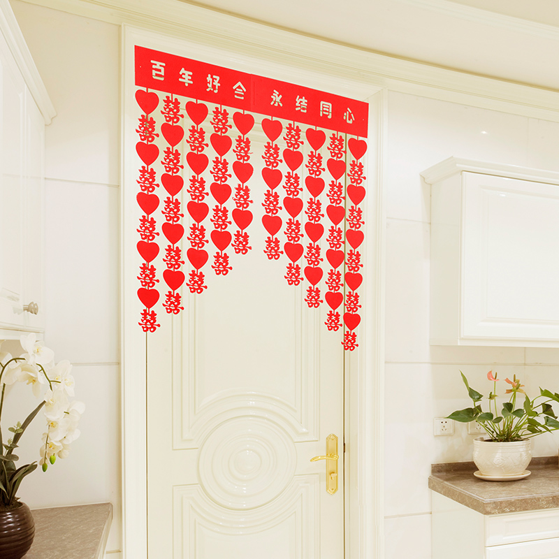 Wedding Goods Wedding Celebration Unwoven Cloth Loving Joy Words Laflower Hanging Curtain Wedding House Arrangement Decorative Door Curtain Wholesale