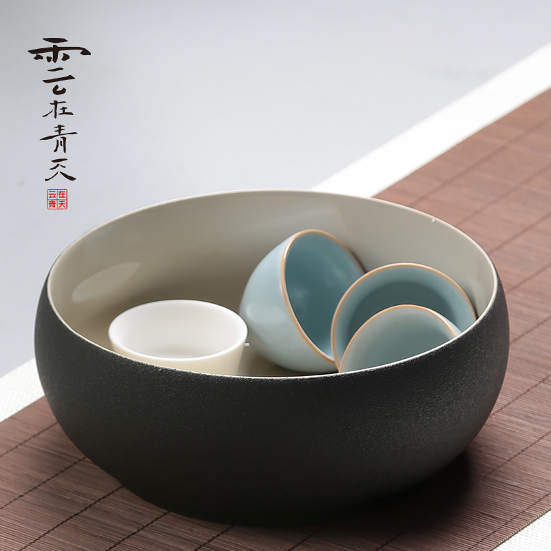 Black pottery tea dregs bucket Black pottery three-cup wash Ru kiln straight mouth wash Black pottery wash Tianqing straight mouth wash Tianqing Yangshan wash Ru kiln Yangshan wash