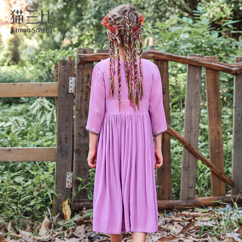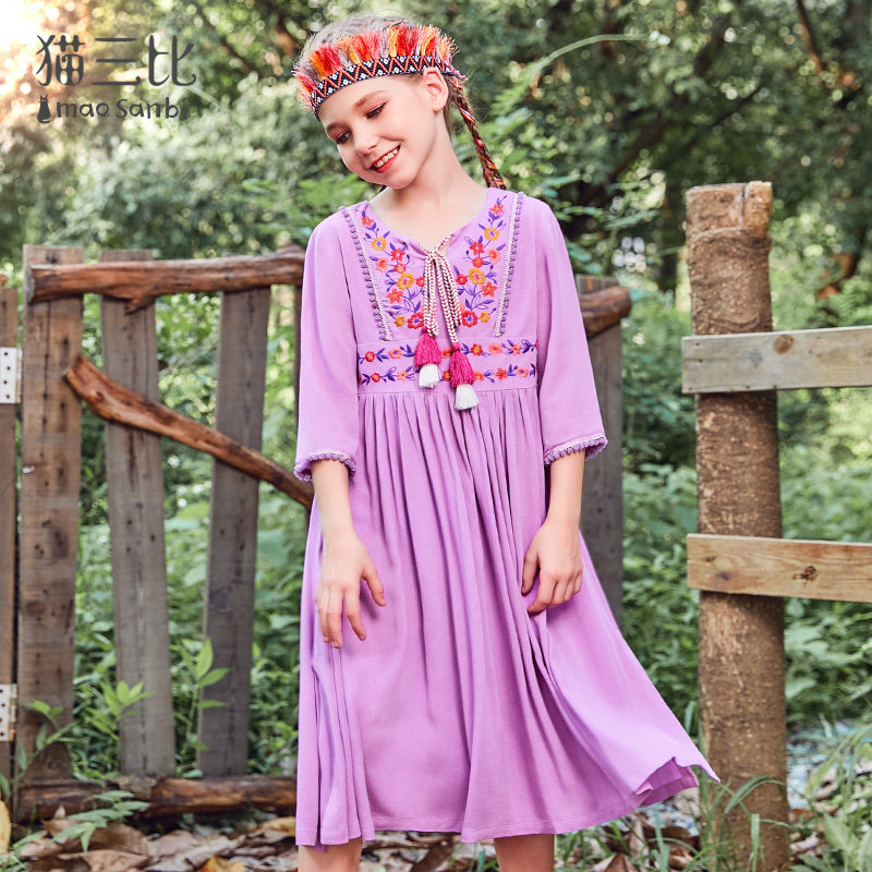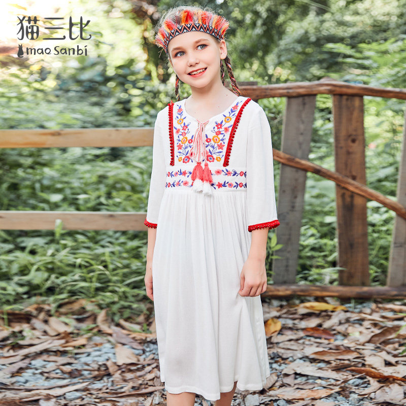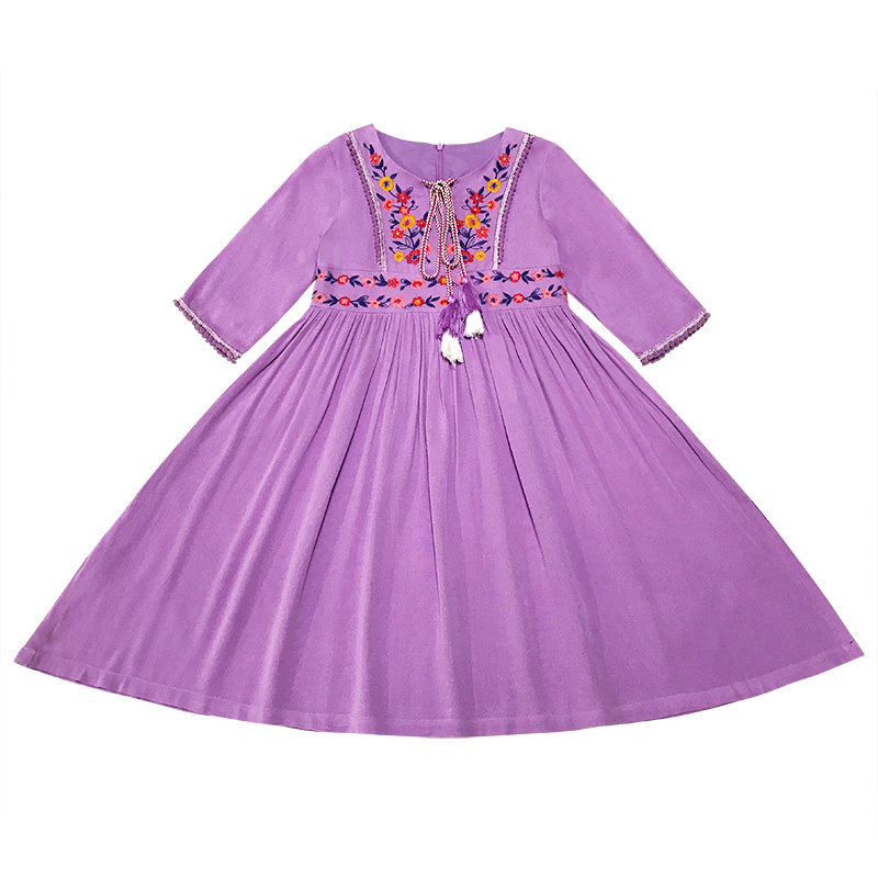 Different parent-child dress mother and daughter long skirt ethnic style 2022 summer girls' holiday three-quarter sleeve dress embroidery