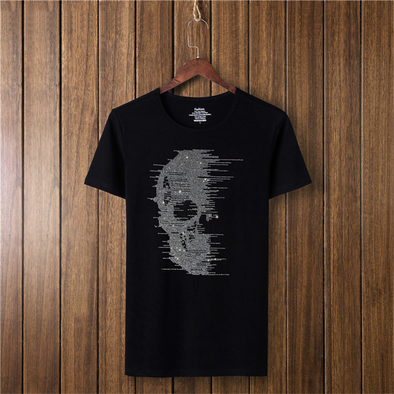 Chao Brand Skull Crewneck Short Sleeve T-shirt Hot Diamond Casual Japanese Large Size High Grade Men's Couple Half Sleeve Backing Shirt
