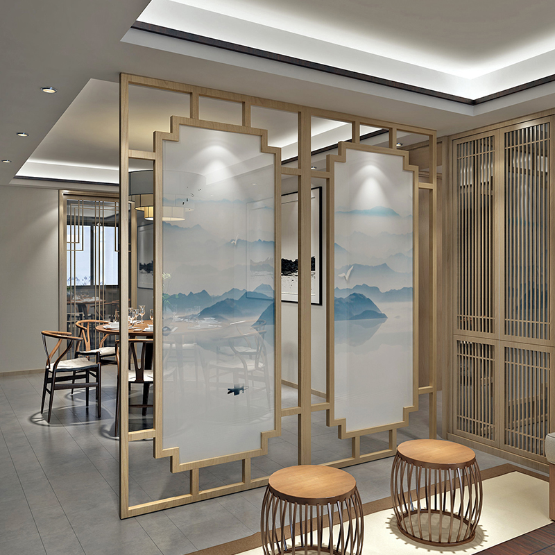 Modern Simple Living Restaurant Chinese screen partition foyer custom porch hollow mobile solid wooden seat screen