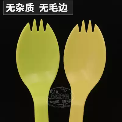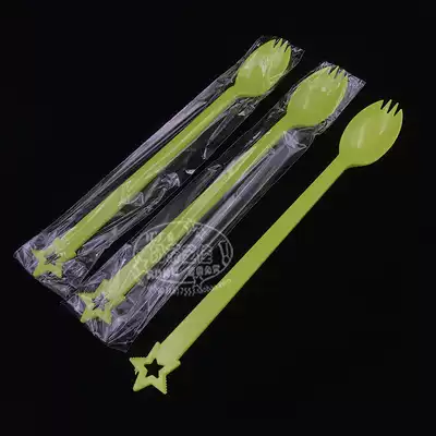 Thickened long handle plastic fork spoon disposable extended Fruit Tea fork independent packaging sand ice spoon with jagged 21cm