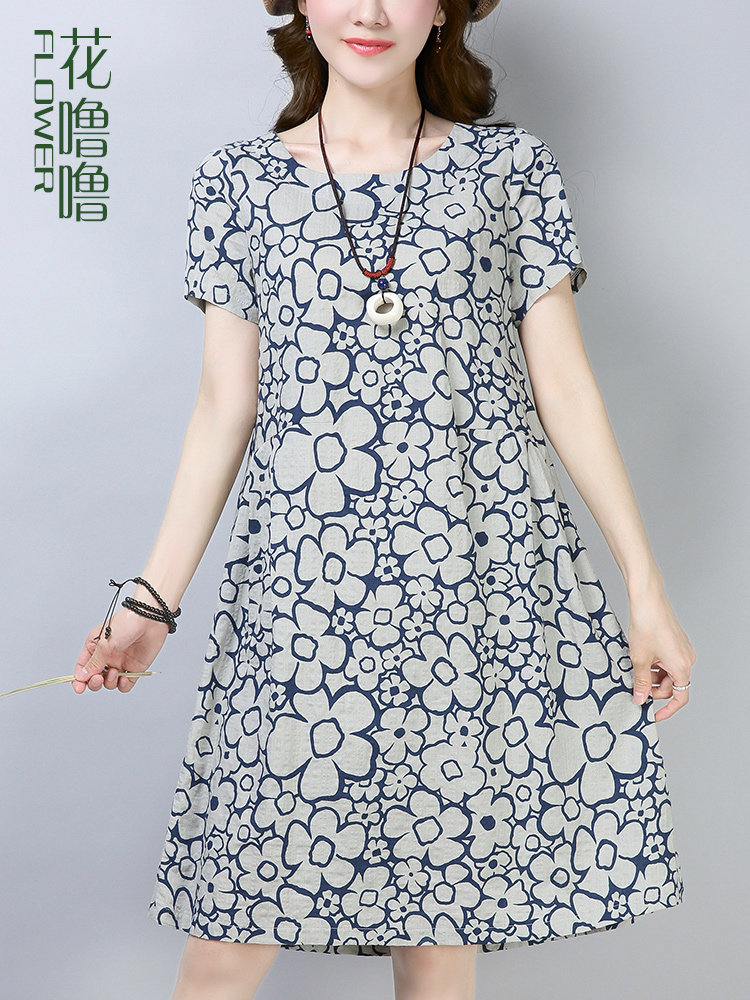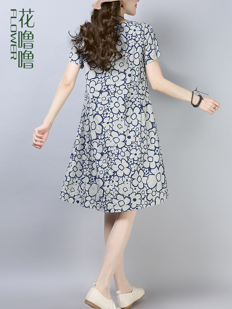 Lady's dress 2022 new summer dress for women who cover her belly and look thin and small, 40-year-old middle-aged mother's skirt