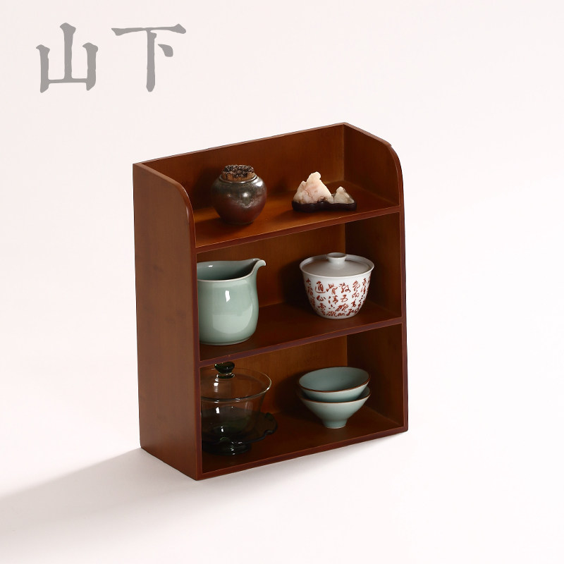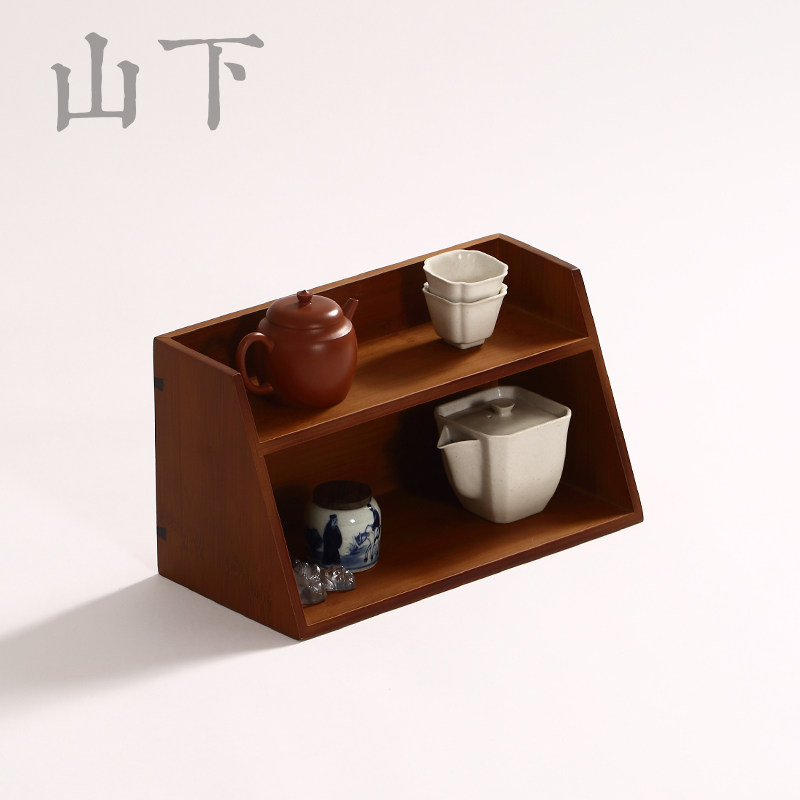 Tea tea teapot storage cabinet imitation ancient two-story three layers of small tea rack exhibition shelves Multi-Bag tea shed Bogu shelf