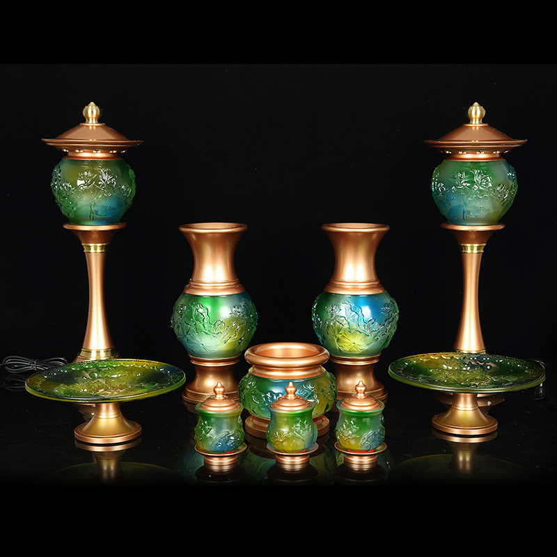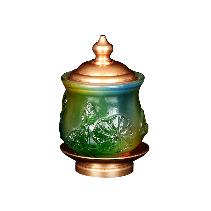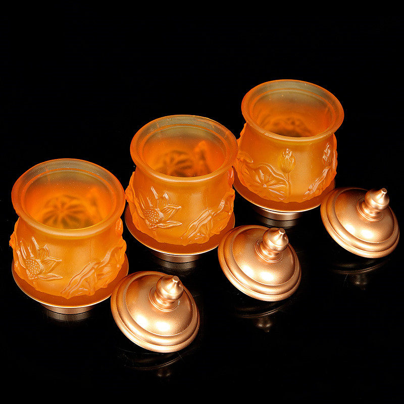 Offering Buddha supplies Colorful glass Lotus water supply cup Holy water cup in front of the Buddha Water purification Cup Offering cup Tribute water cup Buddha Hall ornaments