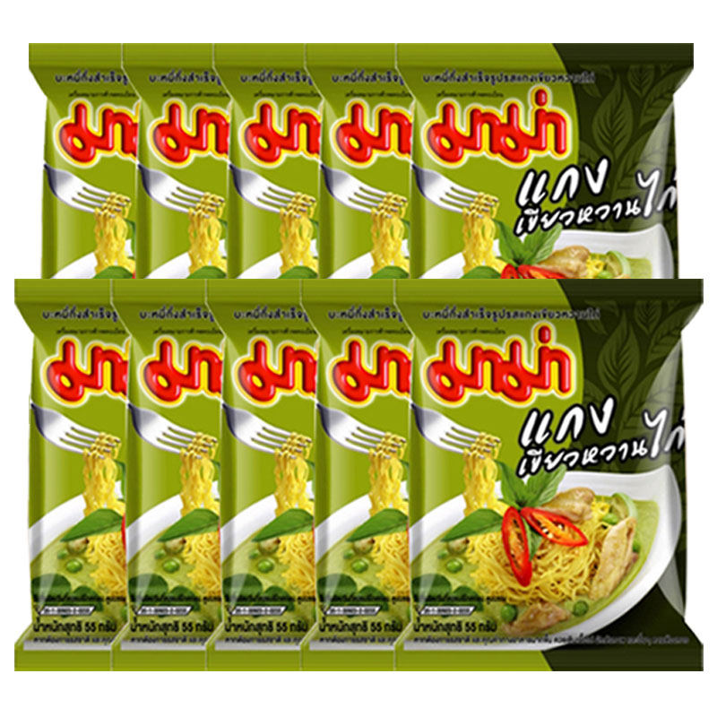 Thailand imported MAMA mother green curry chicken instant noodles bag instant noodles snack Tom Yum soup 55g*10