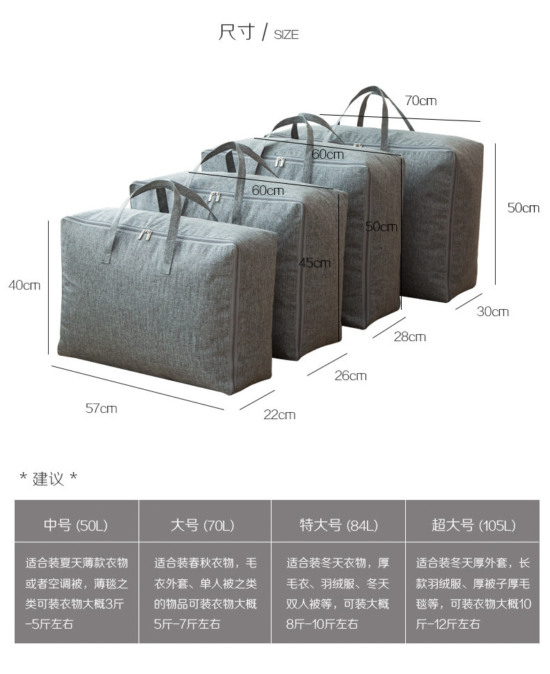 Mid-Number 50L (57 * 40 * 22CM) Large number 70L (60 * 45 * 26CM) extra-large 84L (60 * 50 * 28CM) megacity 105L (70