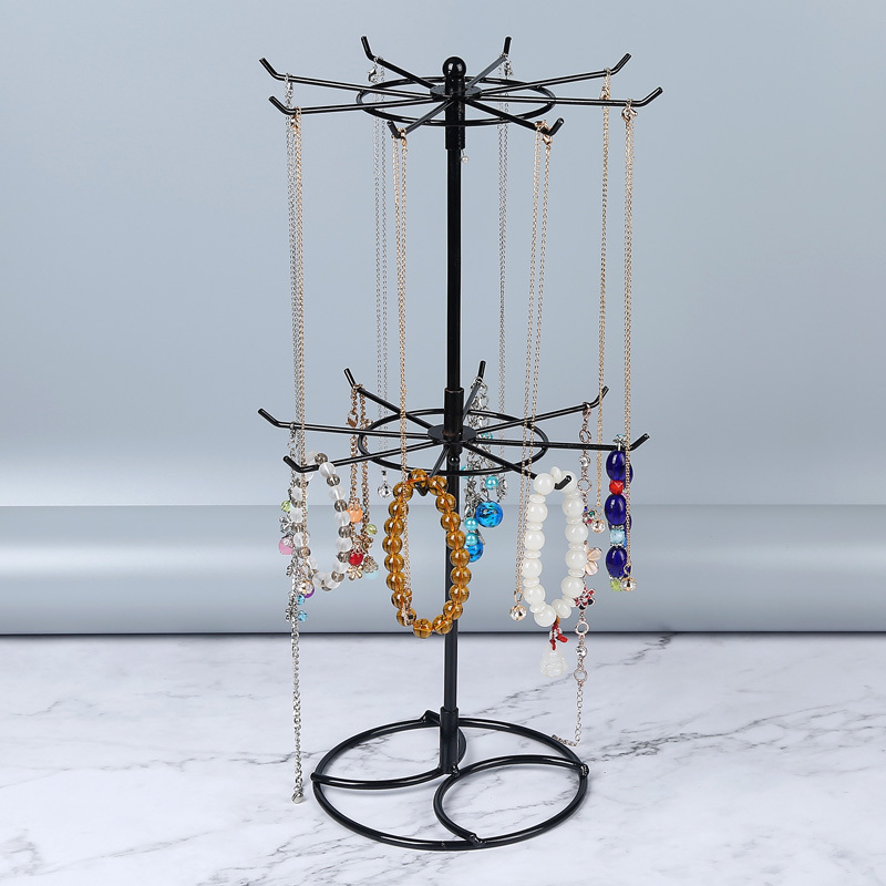 European wrought iron double-layer rotating jewelry rack necklace bracelet pendant jewelry display rack earring stud storage shelf
