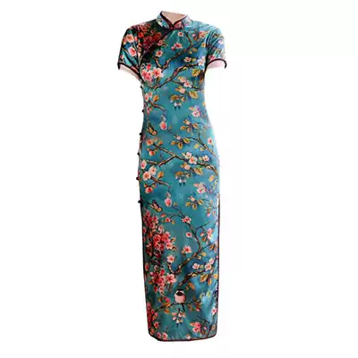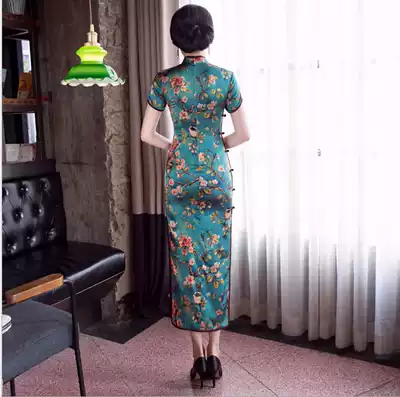 Heavy silk cheongsam long version female retro modified version old Shanghai mulberry silk medium long version dress Chinese style summer