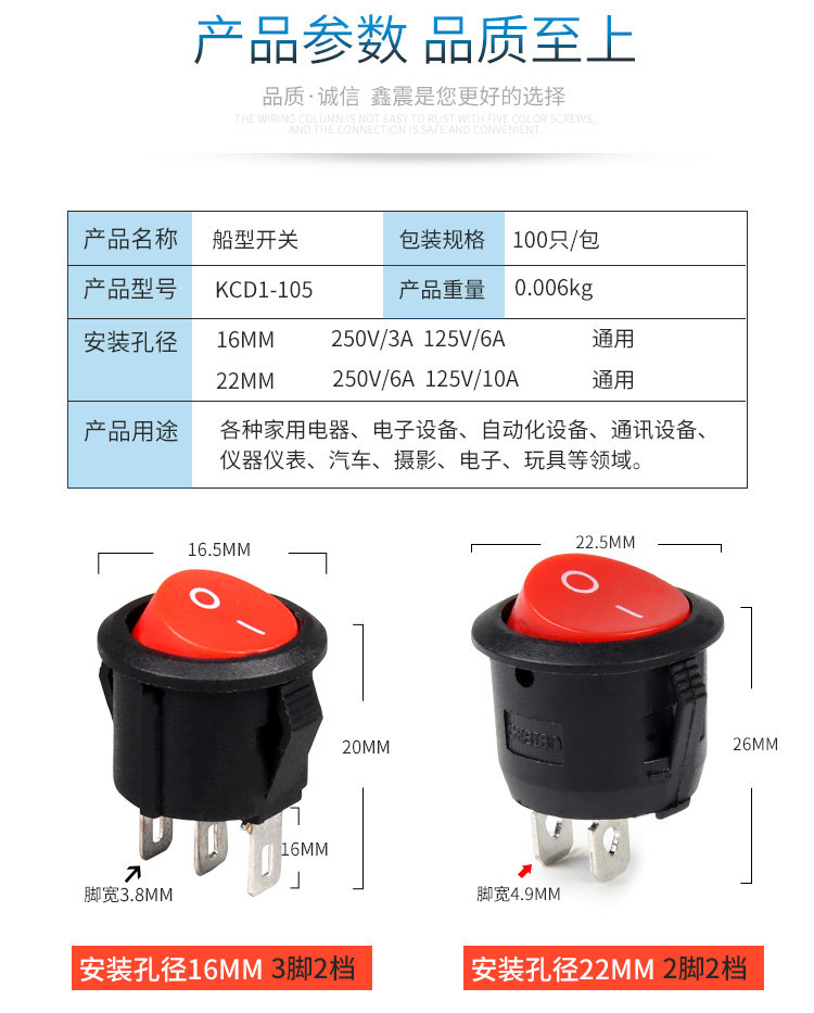 15mm 20mm KCD1 circular switch with light egg cooker power supply Small quick cooker rocker switch 3 feet 2 gears