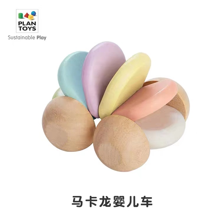 PlanToys Log Macaron Stroller Rainbow Color Learning to Climb Baby Practice Listening Wooden Castanets Car Toys