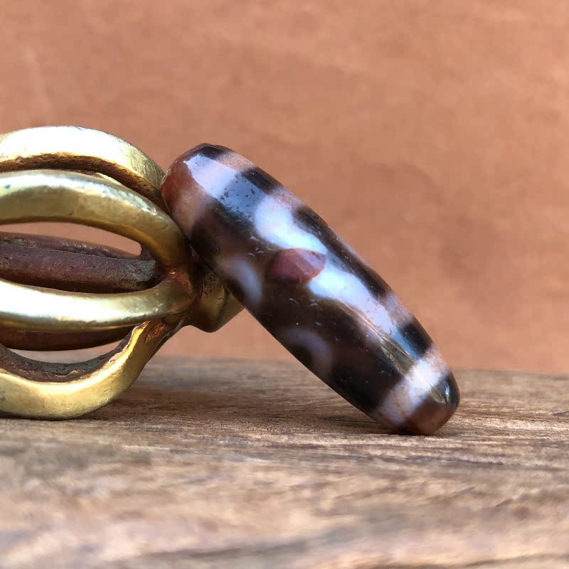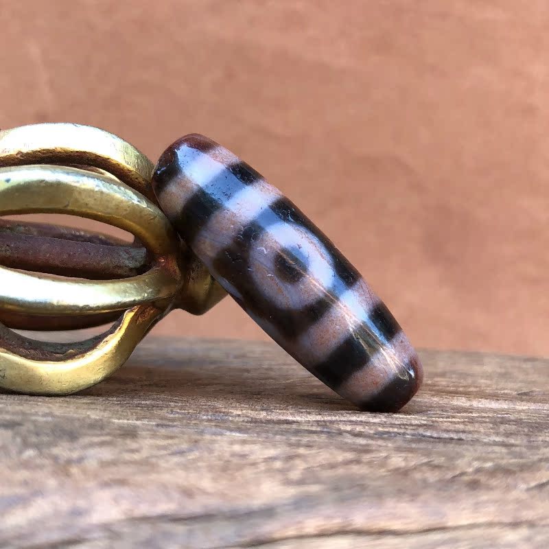 Tibetan Tibetan Three-Eyed Dzi Natural Cinnabar Genuine to Pure Agate Chalcedony Pulp Oil Moisturizing and Weathering Clearly