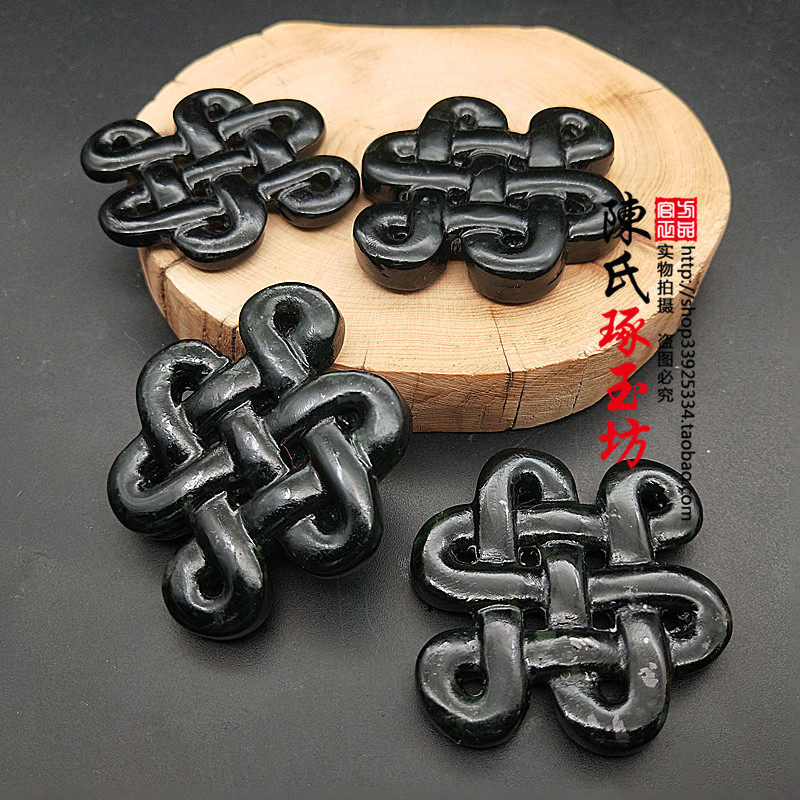 Black green jade Chinese knot jade pendant hollow carving Lantian jade Chinese knot jade pendant DIY handmade accessories accessories