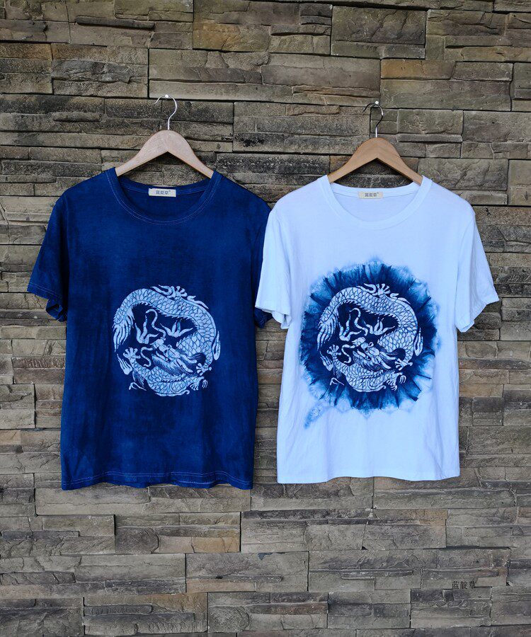 Batik Dye T-shirt Customised Dragon Thread Handmade Plant Dyeing Blue Dye Non-Relic Craft Art Ventron Gift Set to do