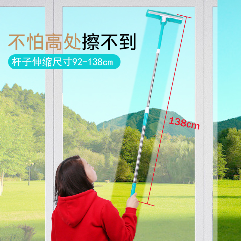 Hand-free glass cleaner Water-squeezing extension telescopic rod Double-sided glass wiper High-rise window cleaner artifact household