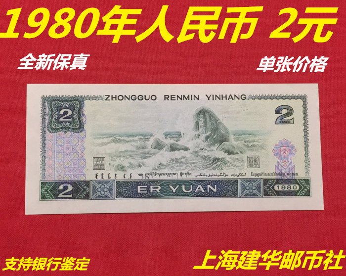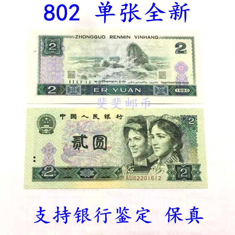 Knife and tear completely new fourth set of 4 version RMB 1980 2 Yuan RMBtwo 802 Old coin single banknote