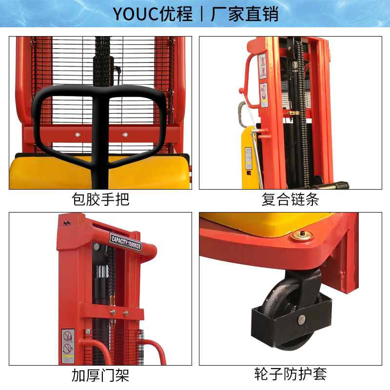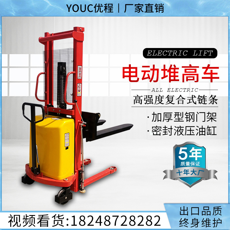 Yuecheng 2 tons of semi - electric hydraulic stacking truck electric forklift 1 ton elevated loading and unloading truck battery lift stacking truck