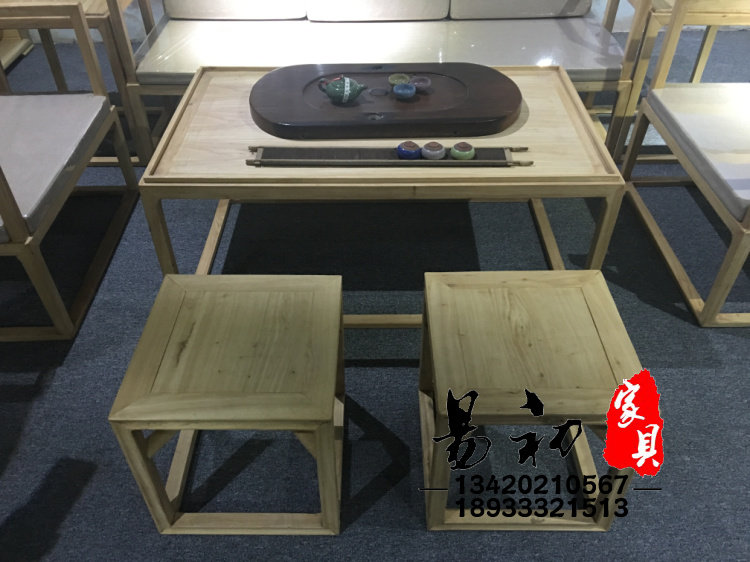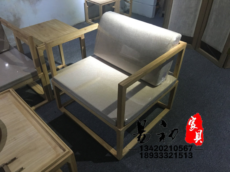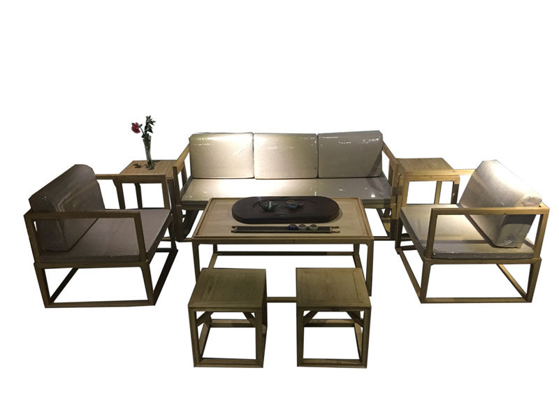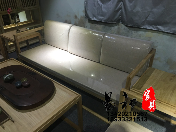 New Chinese style all solid wood living room sofa chair combination ash simple office kung fu coffee table sofa six-piece set