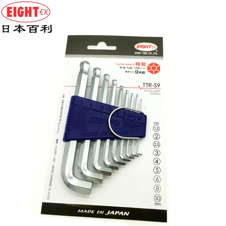 Japan EIGHT Bailey imports inner hexagon wrench Short tail lengthened ball head wrench TTS-9 7 1 5-10MM