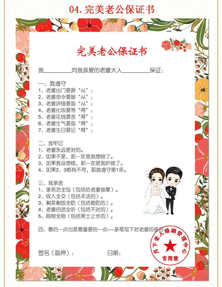 Peumen slogan 4 Zhang wedding bond perfect husband bond lip print card bridegroom Honor certificate My favorite wife vows book husband Entrance Exam Blank Vows book blank Tunes to find him through hurdle length