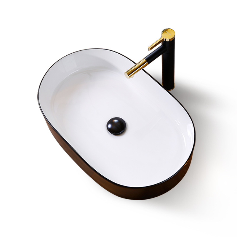 Nordic Industrial Black & White Ceramic Terrace Basin Ultrathin Water Basin Make-up Room Washbasin Bench Basin Washbasin Oval