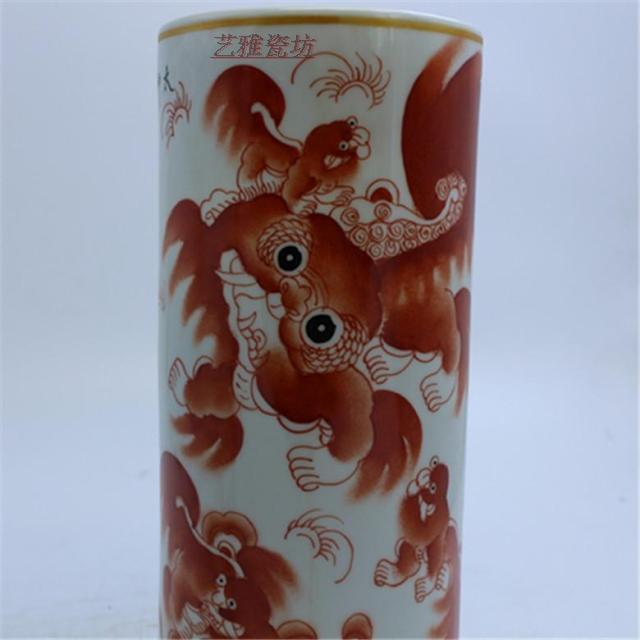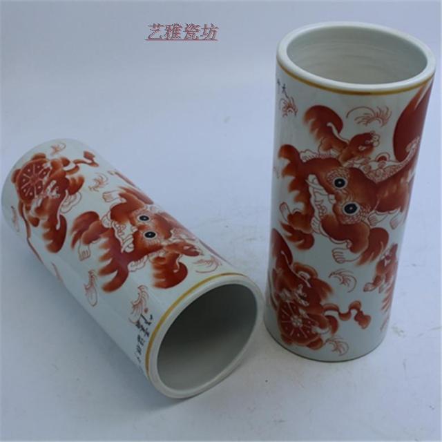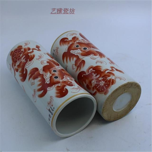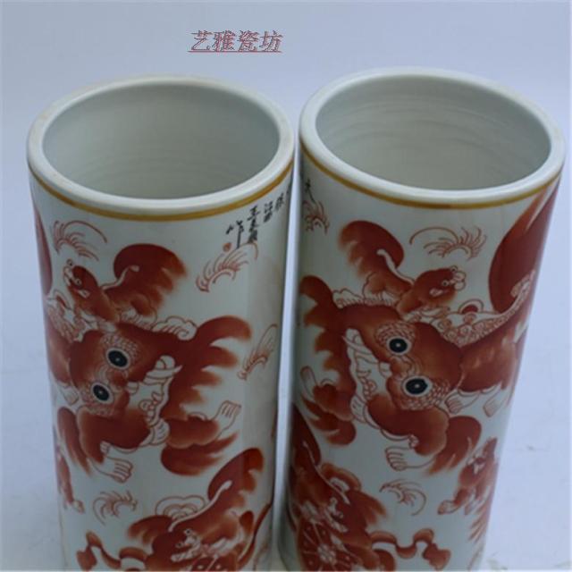 Jingdezhen Ceramic Republic of China Hand painted too few Alum Red Sketching Gold Hat Cylinder A Pair Of Ancient Play Porcelain Old Stock Collection