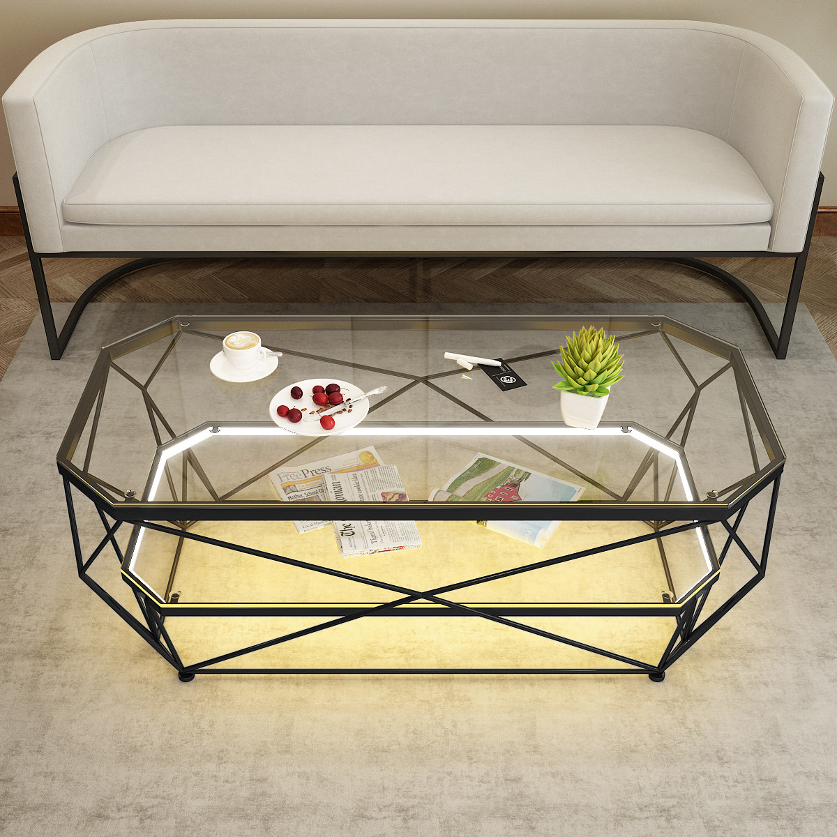 Nordic Rectangular Tea Table Creativity Small Family Living Room Ins Wind Iron Art Glass Table Tennis Red Fashion Modern Brief