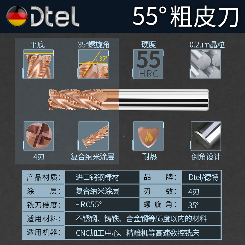Dette coarse leather milling cutter open thick and large in 55-degree straight shank wave-edge tungsten steel alloy hard steel with coarse milling cutter