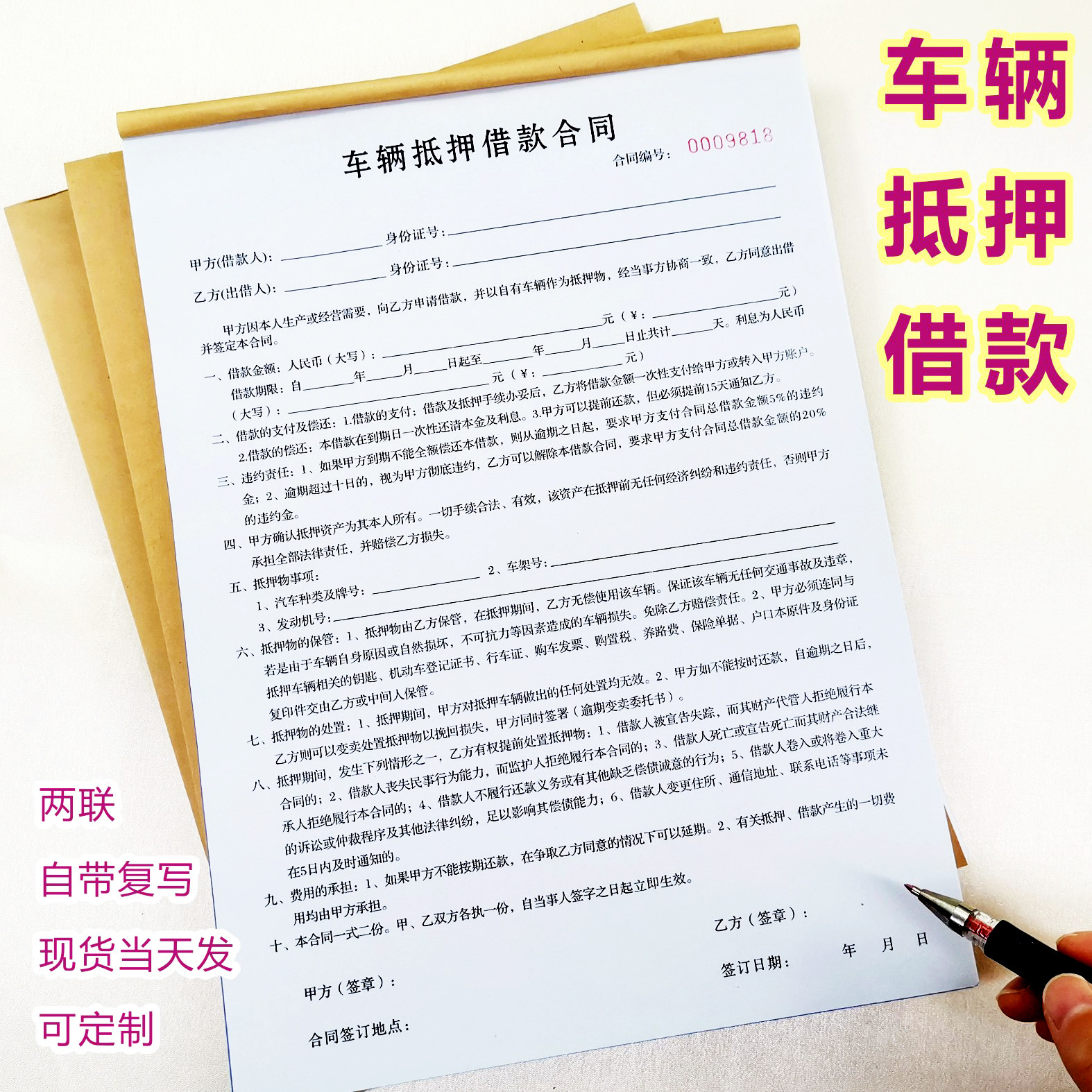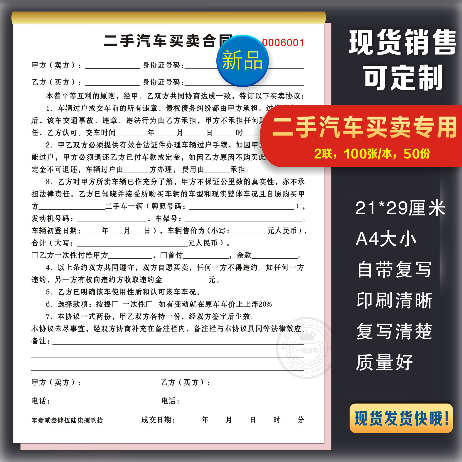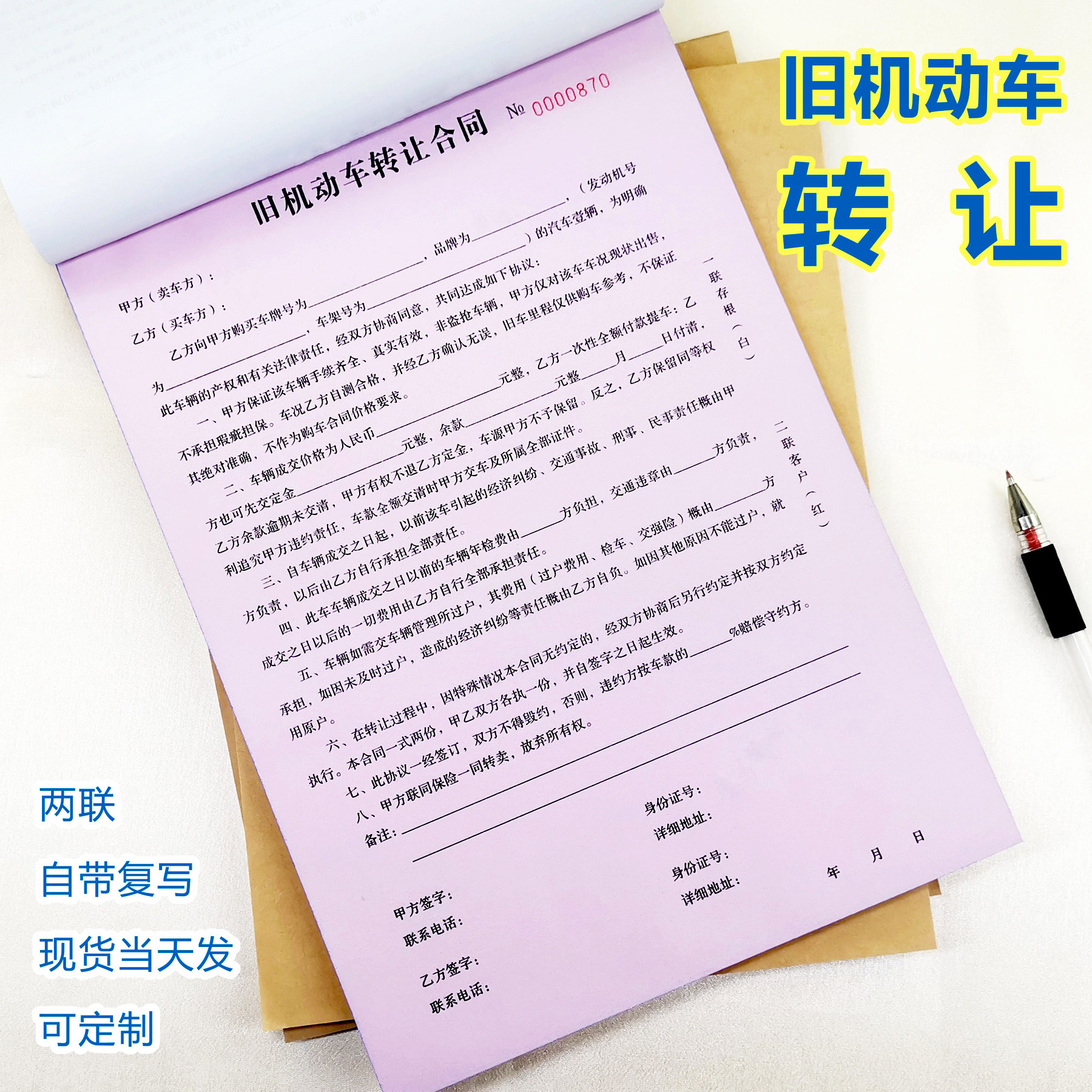 Motor vehicle trading contract (one 9 9 yuan) motor vehicle trading contract (2 this RMB17 ) motor vehicle trading contract (5 this RMB40 ) motor vehicle trading contract (10 this RMB75 ) secondhand