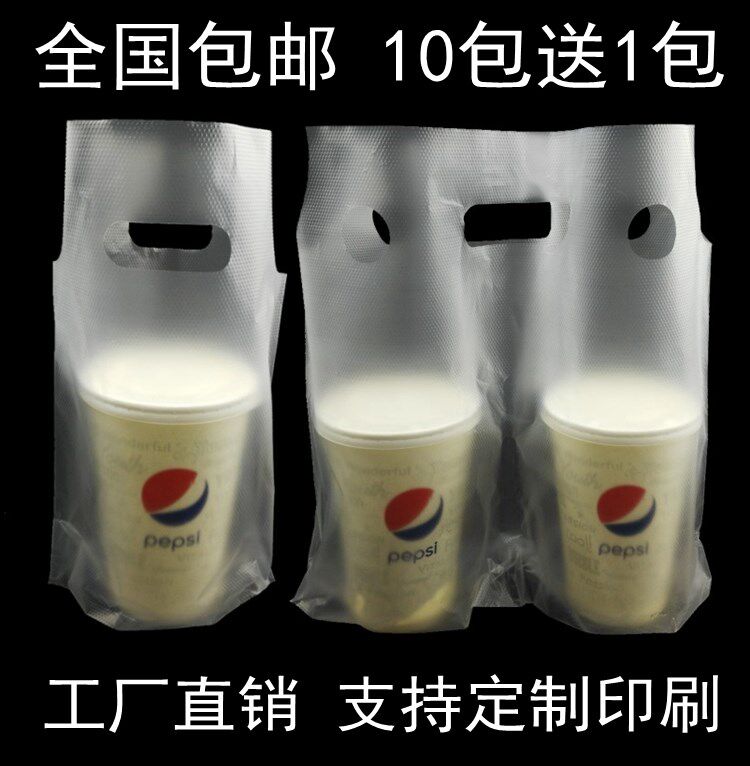 Milk tea packaging one cup bag two cup bag takeaway beverage bag thickened transparent single cup double cup plastic bag 100