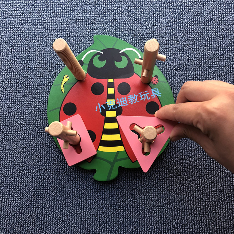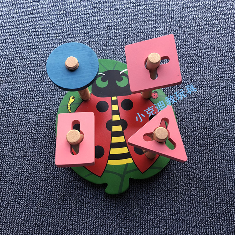 Mon Puzzle Children Teaching Aids Beetle Four Sets Columns Awareness Learning Shapes Graphic Building Blocks Intelligence Wooden Toys
