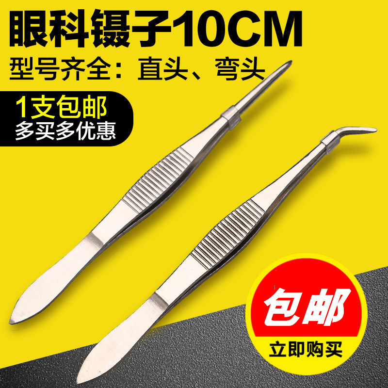 Stainless steel eye tweezers length 10cm straight head bend tip tip tweezers with eyelid eye skin tweezers