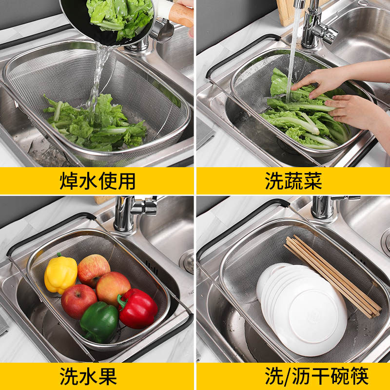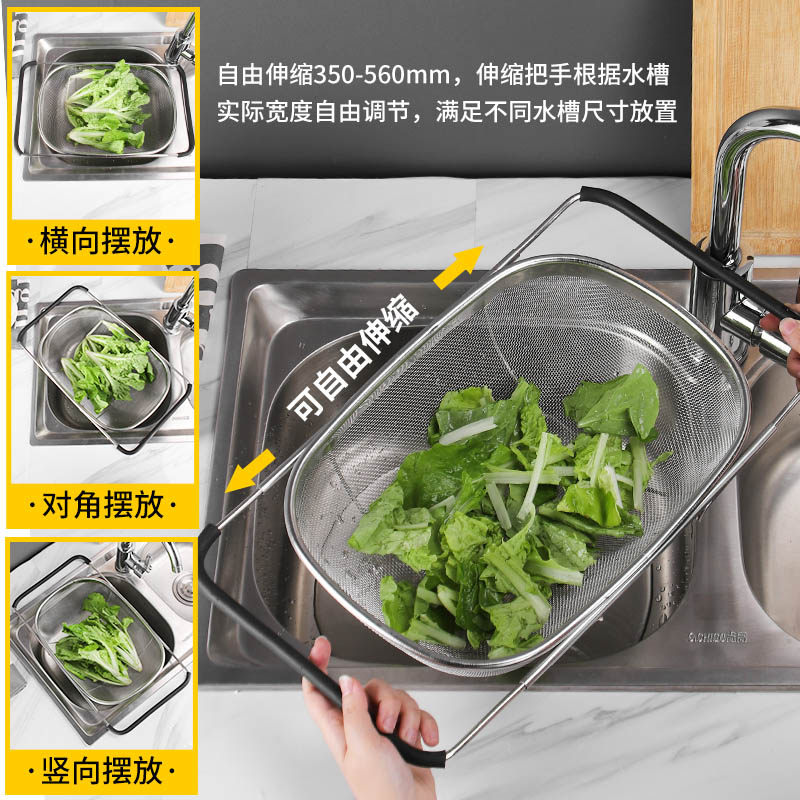 Retractable household sink drain rack Stainless steel drain basket Kitchen shelf Vegetable washing pool drying dishes and chopsticks dishes
