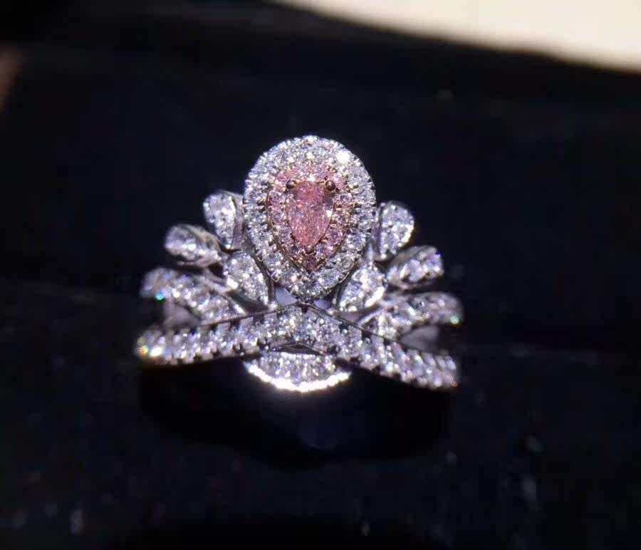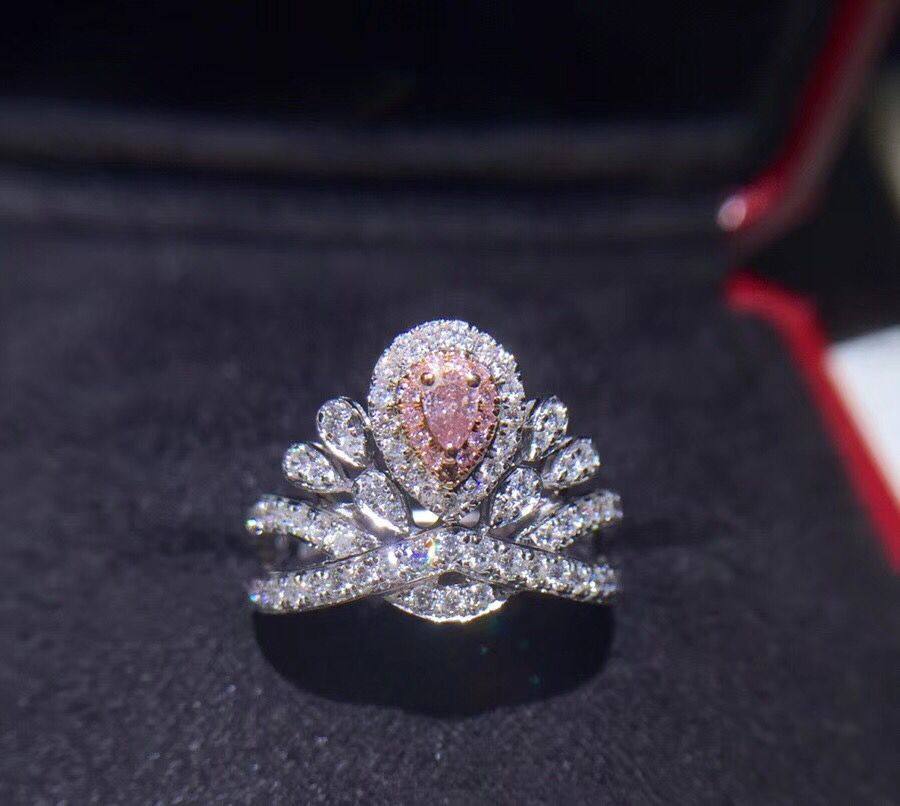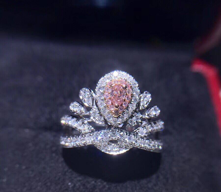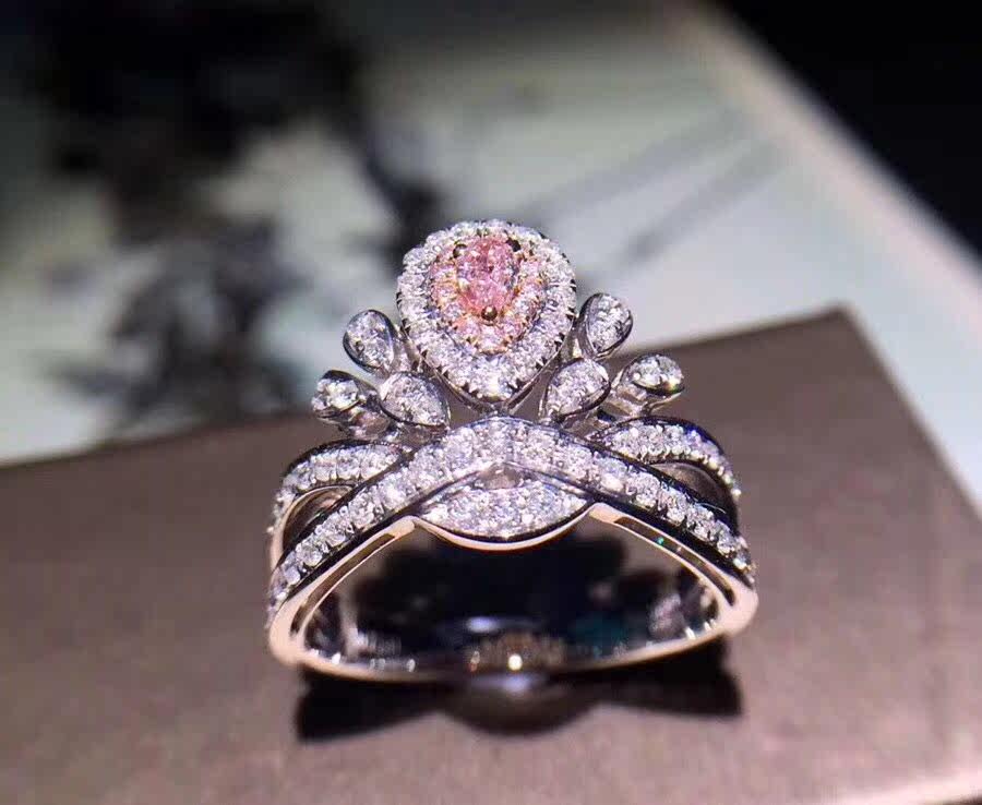 18K white gold drop-shaped pink diamond diamond ring romantic marriage crown luxury group diamond ring female