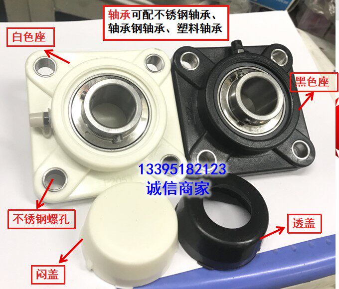 Plastic stainless steel bearing with seat SUC201 UC202 F203 F204 F205 F206 F207 F208