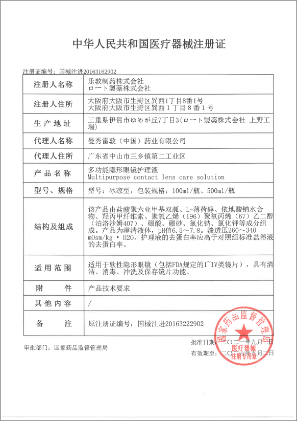 Original imported Manxiu Ledong Rohto Qing C3 multi-function contact lens care fluid 500ml cold TF