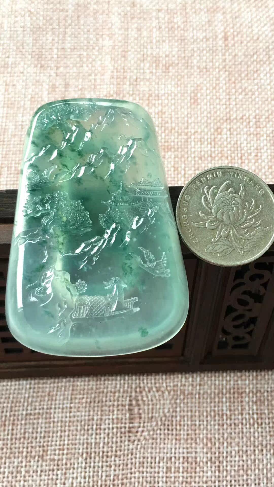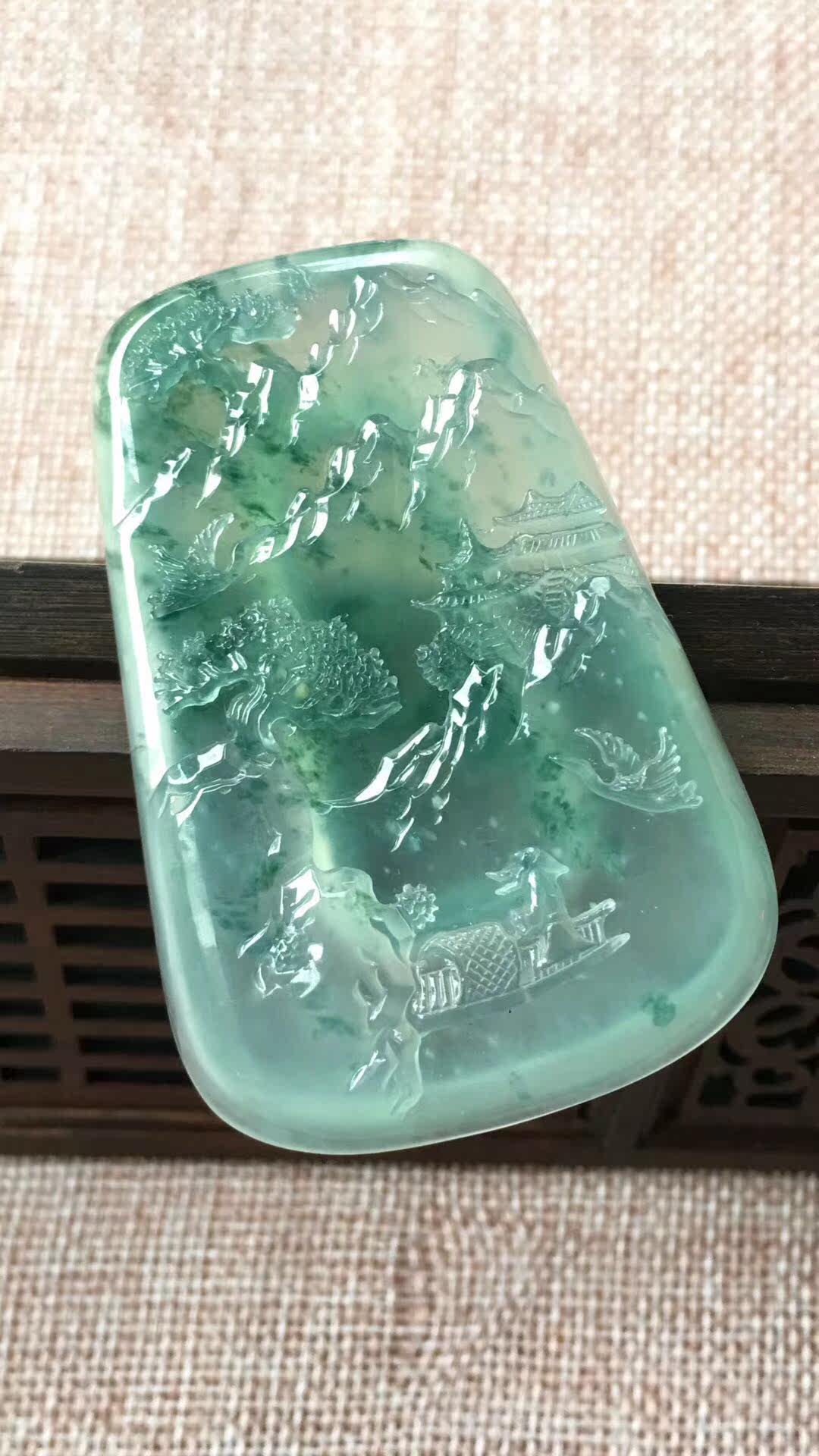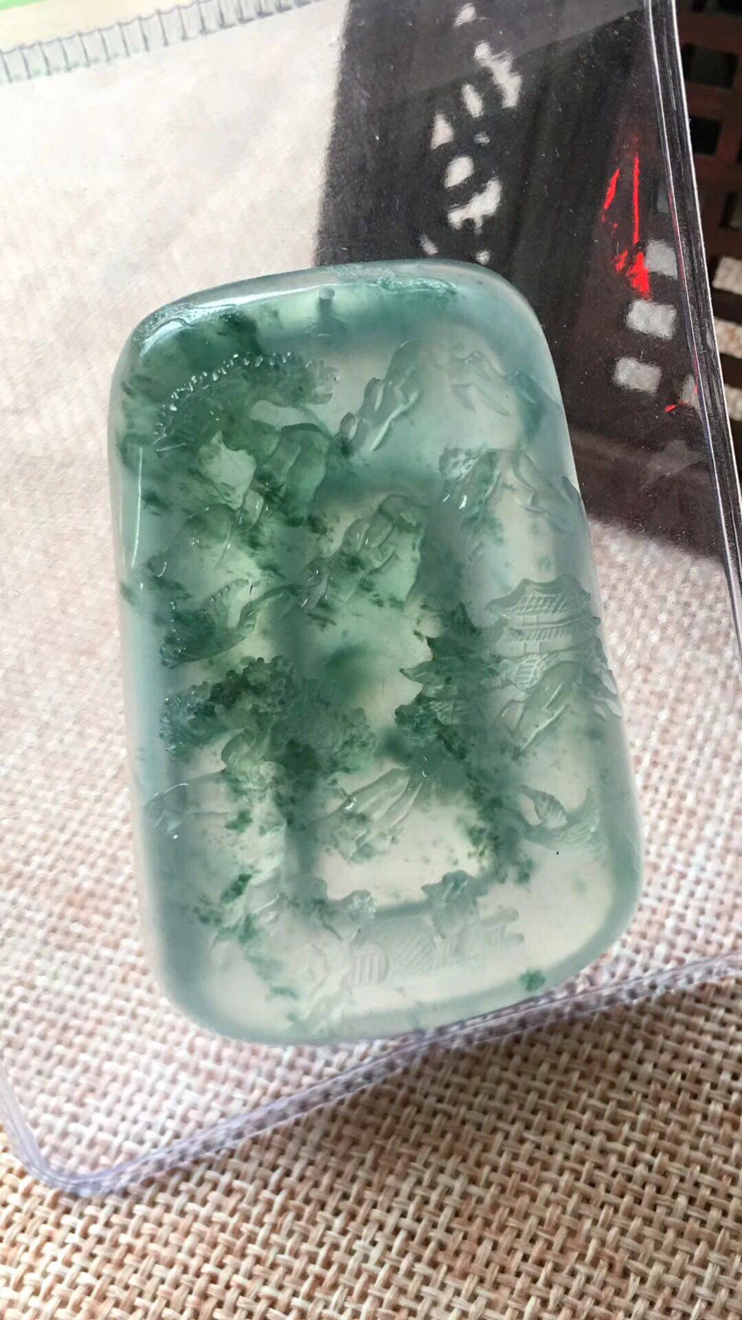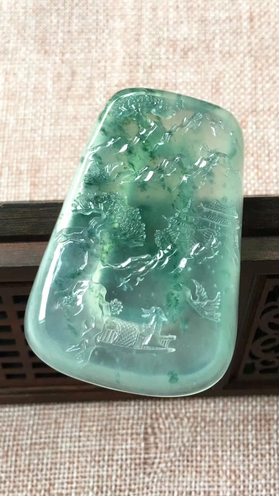 Mingkai jade jade old pit high ice species floating flower mountain water brand pendant jade pendant Natural A goods jade belt certificate