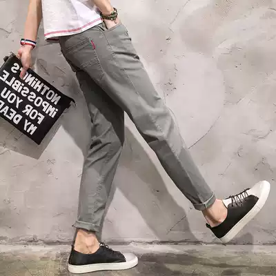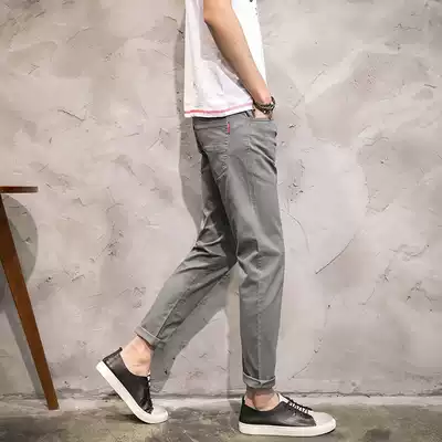 Pants men autumn casual pants ankle-length pants trousers straight tube twill slim slim trend elastic narrow foot pants men Youth