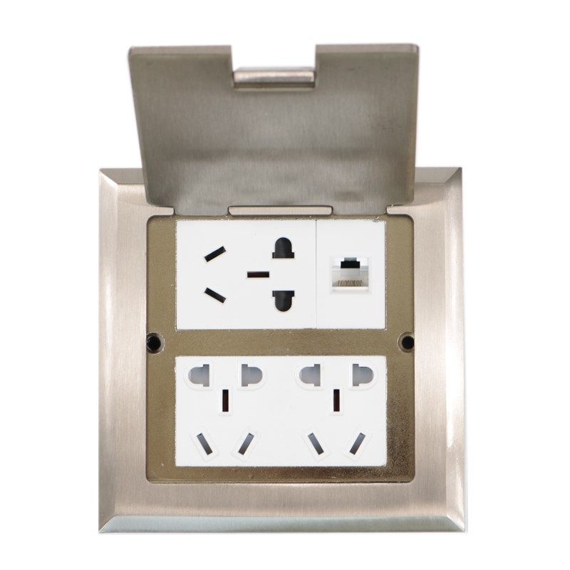 Stainless steel ground socket open type 304 wire drawing RJ45 Internet multifunction power floor socket Home waterproof